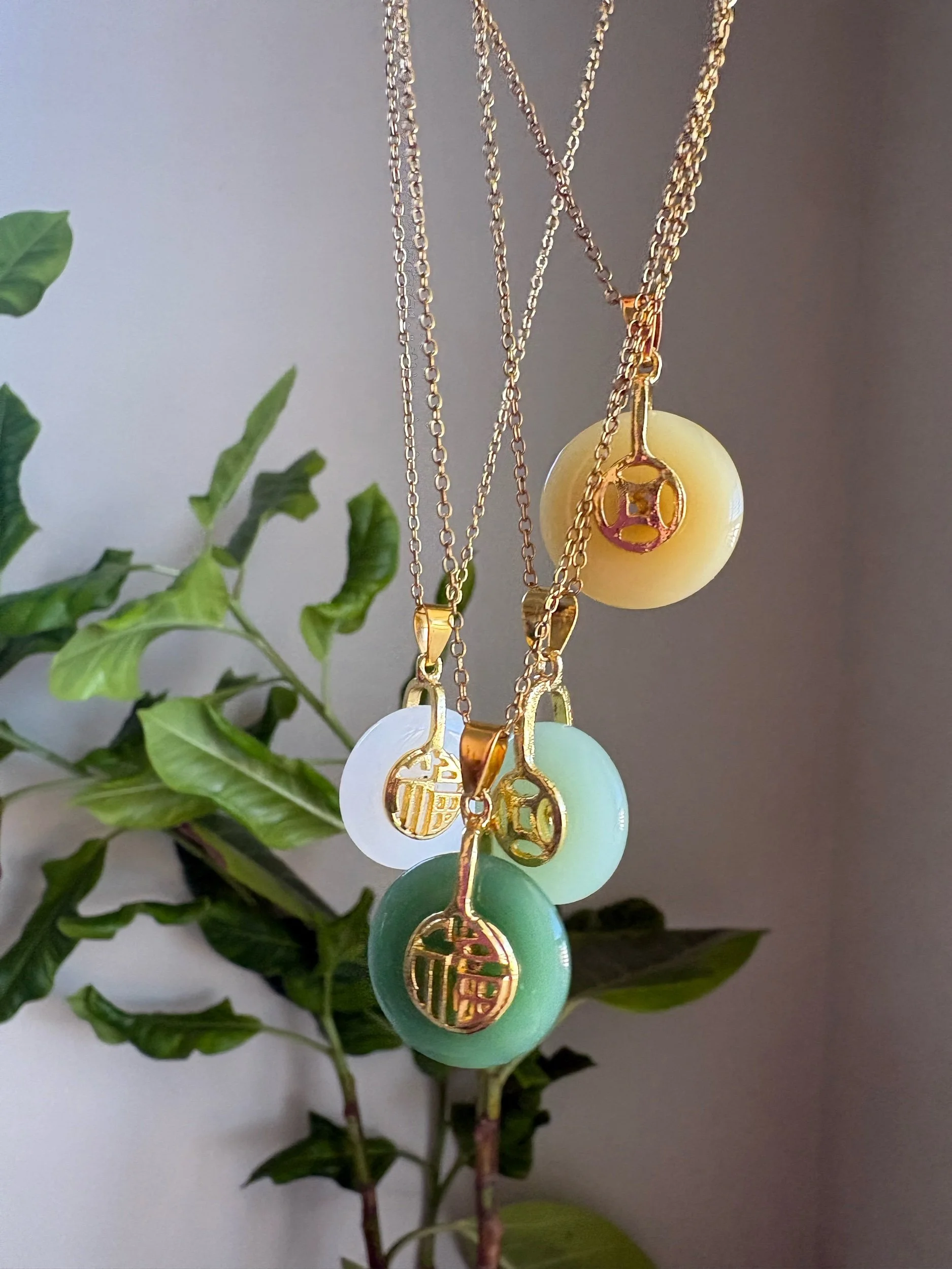 store › Good Luck Jade Necklaces Image 1 of 1 Good Luck Jade Necklaces $30.00 Chinese good luck Jade necklaces.With stainless steel gold. Standard 18inch chain Color: Green Jade Yellow jade White Jade Light green jade Add To Cart Added! Chinese good luck Jade necklaces.With stainless steel gold. Standard 18inch chain Reviews Reviewer Name Review Date Star Rating Description Posted on Etsy Product Show More