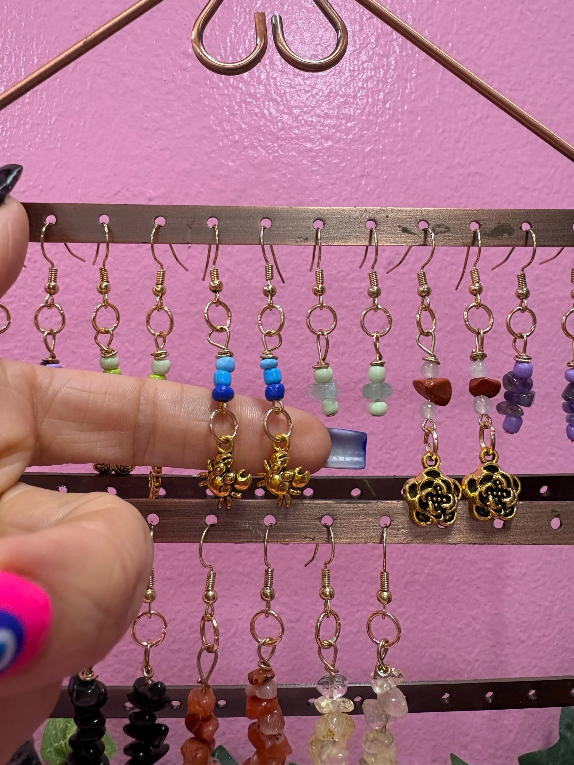 store › dangle earrings Image 1 of 5 Image 2 of 5 Image 3 of 5 Image 4 of 5 Image 5 of 5 dangle earrings from $2.22 Earrings: Select Earrings mini purple mini green clovers mini blue crabs mini mint green carnelian red rose lapis lazuli crystals black tourmaline crystals carnelian crystals citrine crystals Add To Cart Added! Reviews Reviewer Name Review Date Star Rating Description Posted on Etsy Product Show More